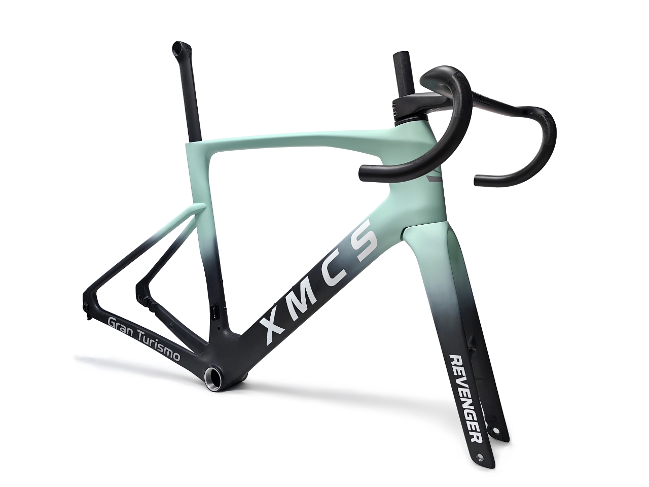 The XM Carbon Speed XMCS Gran Turismo frameset is an aero road bike with endurance geometry, featuring high stack and low reach for a comfortable yet aerodynamic riding position. It uses T800 carbon fiber with T47 bottom bracket standard, internal cable routing, and UDH hanger. Users report excellent build quality, smooth ride comfort, and stable handling, though some experienced issues with seatpost fit and mandatory branding on painted frames. The frame is designed for riders seeking an aero bike with relaxed geometry rather than aggressive racing posture.